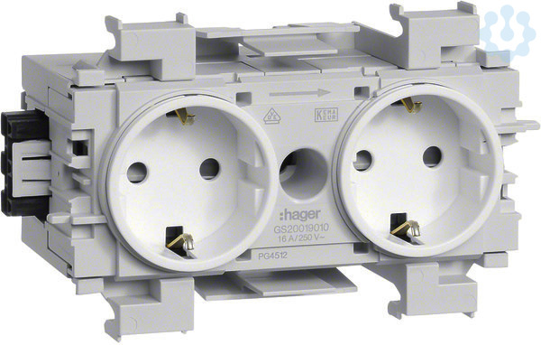 Steckdose 2-fach mit Wago Steck-/Klemmtechnik Frontrastend in verkehrsweiß. Kanalsteckdose mit erhöhtem Berührungsschutz, vorverdrahtet, anreihbar durch 3-poliges Steckverbindersystem mit Schnellbefestigung für frontrastender Geräteeinbau. Leitungsanschluss über Steckklemmen 1,5 - 2,5 mm² oder über verpolungssicheres Steckverbindersystem.