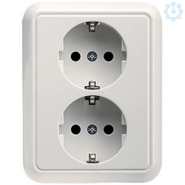 Steckdose 2-fach, Farbe: sodalithblau halbversenkt, Abdeckung 80x104x27mm, aus Thermoplast für 55er Einbaudosen Schutzkontakt-Steckdosen 16 A 250V AC Steckdosen mit Steckklemme sind mit Überspannungsschutzmodul als Gerätefeinschutz nachrüstbar. Schraubklemmen Klemmbereich für Kupferleiter 1,5 mm² und 2,5 mm², für den sicheren Anschluss von Aluminiumleitern 2,5 mm² ohne Vorbehandlung
