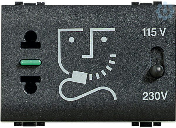 Steckdose für Rasierapparat mit Trenntrafo – Eingang 230?V a.c. 50/60 Hz – Ausgang 115/230?V a.c. 20 VA – 3-modulig, Farbe: Anthrazit
