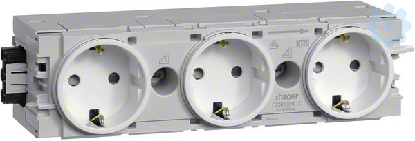 Steckdose 3-fach mit Wago Steck-/Klemmtechnik C-Profil in verkehrsweiß.Kanalsteckdose mit erhöhtem Berührungsschutz, vorverdrahtet, anreihbar durch 3-poliges Steckverbindersystem mit Schnellbefestigung für Geräteeinbausystem mit C-Profil. Leitungsanschluss über Steckklemmen 1,5 - 2,5 mm² oder über verpolungssicheres Steckverbindersystem.