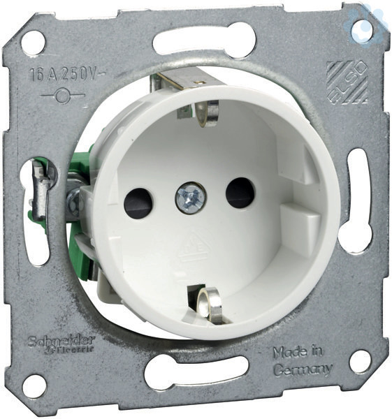Steckdoseneinsatz mit erhöhtem Berührungsschutz für Zentralplatte, Farbe: reinweiß. Schutzkontakt-Steckdosen 16 A 250V AC. Steckdosen sind mit Überspannungsschutzmodul als Gerätefeinschutz nachrüstbar, für Unterputzmontage. Schutzart IP 20. Steckklemmen,Klemmbereich für Kupferleiter 1,5 mm² und 2,5 mm². Verbindungsklemmen nach VDE 0620.