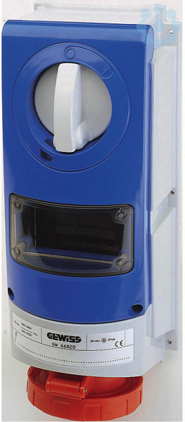 IEC Steckdose ohne Gehaeuseunterteil fuer senkrechte Anordnung mit Schalter und mechanischer Verriegelung. Der Schalter ist verriegelt und kann nur bei eingestecktem Stecker betaetigt werden. Durch ein Vorhaengeschloss kann die IEC Steckdose wahlweise im ein- oder ausgeschalteten Zustand gesichert werden. Zylindersicherungen mit der Groesse 10,3x38 mm fuer die Bemessungsstroeme 16 und 32 A und der Groesse 22x58 mm fuer 63 A. Zur Montage in Steckdosenkombinationen, Aufputzgehaeusen und zum Einbau in Maschinen und Anlagen.