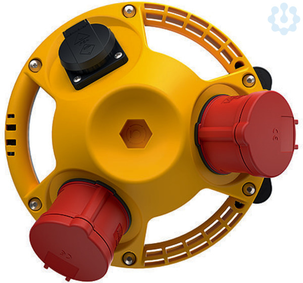 MENNEKES 3KRAFT anschlussfertig verdrahtet Schutzart IP 44 Gehaeuse: 1 AMAPLAST-Gehaeuse schwarz (aehnlich RAL 9005) mit anscharniertem Geraetedeckel (gelb), integrierten Aufhaengeoesen und Standfuessen Bestueckung: Pos.01 2 CEE-Steckdosen 16A 5p 400V Pos.02 1 Schuko-Steckdose 16A 2p+E 230V Leitungseinfuehrungen zum Ausbrechen: oben: 1x M32, 1x M25, 2x M20 seitlich: 1x M25 1x Durchfuehrung oben fuer Druckluft oder zusaetzlichen Haltegriff (beides ist als Zubehoer erhaeltlich)
