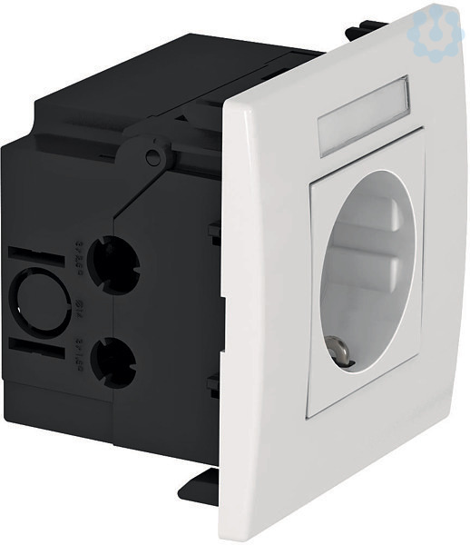 Vorkonfektionierte Steckdoseneinheit mit Beschriftungsfeld, geeignet für den Einbau in Geräteeinbau-Kanalsysteme Rapid 80.