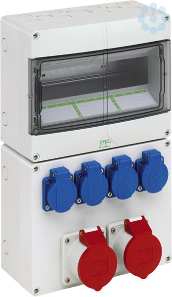 Steckdosenkombination, mit Schutzart IP44, geeignet zum kundenseitigen Einbau von Reiheneinbaugeräten, mit eingebauten, auf PE-/N-Klemme vorverdrahteten Steckdosen, hohe mechanische Belastbarkeit, temperaturunempfindlich, kombinierbar, halogenfrei