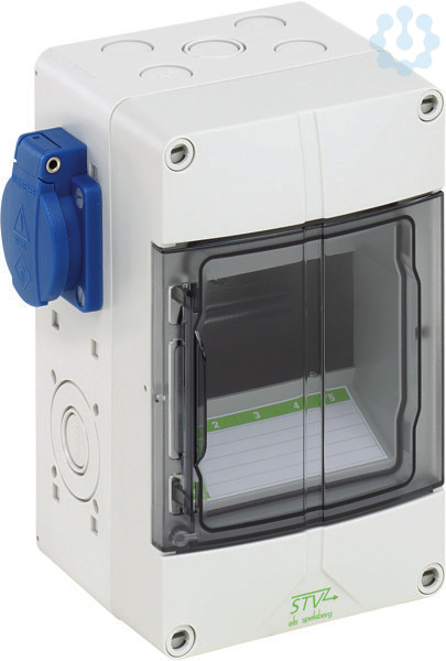 Steckdosenkombination, mit Schutzart IP44, geeignet zum kundenseitigen Einbau von Reiheneinbaugeräten, mit eingebauten, auf PE-/N-Klemme vorverdrahteten Steckdosen, hohe mechanische Belastbarkeit, temperaturunempfindlich, kombinierbar, halogenfrei