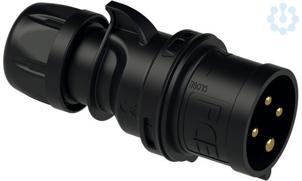 CEE-Stecker 16A 4p 6h IP44/IP54 SHARK schwarz; Gehäusematerial: PA6; Nennstrom: 16A; Polzahl: 4 (3P+PE); Uhrzeit-Stellung: 6h; Nennspannung/Frequenz: 380-415V~ / 50+60Hz; Kontakte: Messing; Anschlusstechnik: Schraubklemmen; Schutzart: IP44/IP54