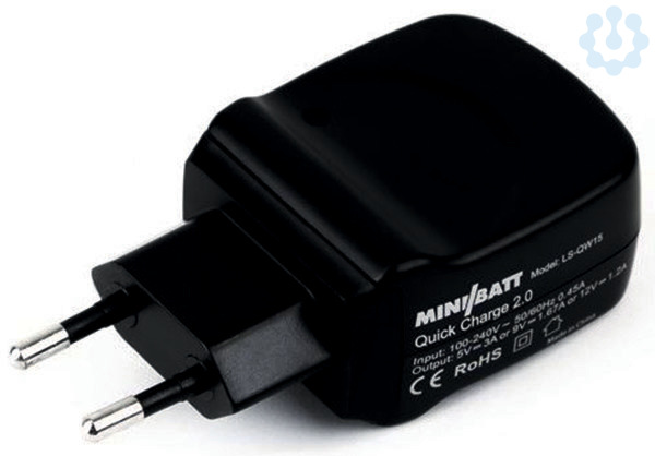Steckernetzteil Quick Charger Farbe: schwarz ähnlich RAL9005 Eingang: AC 100-240V (EURO-Stecker) Ausgang: DC 5V 2,4A oder 9V 1,67A (USB 2.0 A) Verpackt im Karton