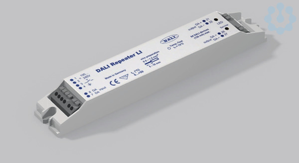 Lichtmanagement: DALI-Repeater.Gehäuse Kunststoff. DALI-Steuergerät und Signalverstärker.Anschluss von bis zu 64 DALI-EVG im Broadcast-Betrieb.Touch-Dimm Steuerung. Ermöglicht eine Verlängerung der DALI-Leitung umjeweils 300 m (bei 1,5 mm²). Geeignet für den Leuchteneinbau oderexterner Betrieb mit dem Einbaugehäuse (09-6448.000) mit integrierterZugentlastung.