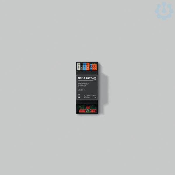 BEGA Steuermodul 70784. Das Steuermodul ist mit einer eigenständigen Intelligenz ausgestattet und benötigt keine zentrale Steuerung. Es regelt selbstständig den Datenverkehr mit anderen Bus-Modulen, wertet Sensoren aus, steuert Aktoren an, verarbeitet Informationen und leitet diese weiter. Steuermodul für Hutschienenmontage · Steuerausgang für 1-10 V / DSI / DALI, Ausgang für Betriebsgeräte mit einer Schaltleistung von 200 VA, I-Anschluss und P-Anschluss · Spannung 220 - 240 V, 50 / 60 Hz.