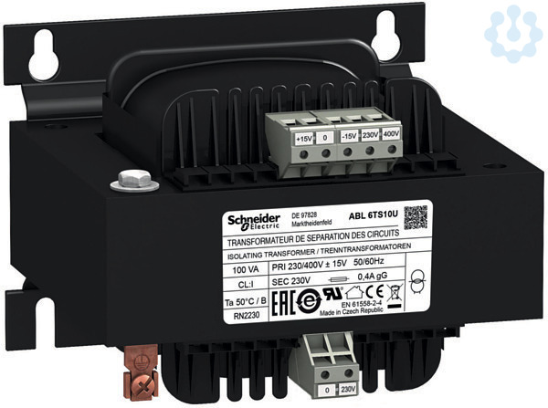 Die Sicherheits- und Trenntransformatoren der Baureihe Modicon ABL6 bieten eine wirtschaftliche Möglichkeit, jeden Verbraucher einzeln oder gruppenweise zu versorgen, z.B. im Bergbau oder in der Raffinerie. Die kompakten Transformatoren eignen sich ideal für Systeme, die mit Niederspannungs-Wechselstrom versorgt werden, wie z.B. Motorschutzrelais und Schütze. Dieser Transformator verfügt über eine Nenneingangsspannung von 230V bis 400V AC, eine Nennausgangsspannung von 230V AC sowie eine Nennleistung von 100VA. Aufgrund der Vielzahl von vorhandenen Produktstandards und Zertifizierungen geeignet für den internationalen Einsatz. Dank des Green Premium Umweltzeichens können Sie detaillierte Informationen zu Materialinhalten, Umweltauswirkungen und Kreislaufwirtschaft erhalten, die Ihre Nachhaltigkeitsziele unterstützen.