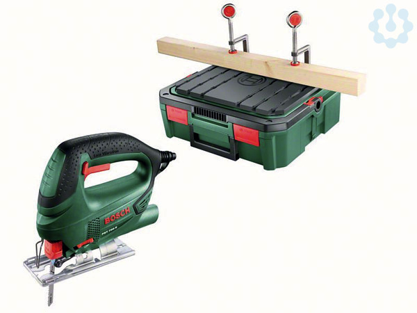 Stichsäge PST 700 ReadyToSaw. Die Stichsäge PST 700 E mit Systembox: das Gesamtpaket für einen schnellen Sägestart, Kompakte Größe, geringes Gewicht und hervorragende Handlichkeit sorgen für kontrollierten und optimalen Benutzerkomfort, Bosch Electronic für eine präzise Hubzahlsteuerung mit dem Schalterdrücker: für einen einfachen Sägestart und materialgerechtes Arbeiten, Minimale Vibrationen und sicheres und komfortables Arbeiten durch Bosch “Low Vibration” mit linearem Massenausgleich und ergonomischem Softgrip, Mit dem Set -ZollReadyToSaw-Zoll sind alle zum Sägen erforderlichen Utensilien in einer Box verfügbar, und die Arbeit kann sofort beginnen. Die Box kann als Arbeitsplatte verwendet werden, wobei das Werkstück zwecks sicherem Sägen bei weniger Vibrationen mit den mitgelieferten Spannbügeln fixiert wird. Drei verschiedene Sägeblätter für gerades und geschwungenes Sägen in Holz und Geradeschnitte in Aluminium. Optimale Präzision und Kontrolle – mit CutControl einfaches und sicheres Verfolgen der Schnittlinie. Bosch SDS sorgt für einen mühelosen und sicheren Sägeblattwechsel – und zwar ohne zusätzliche Werkzeuge. Verstellung der Fußplatte für Gehrungsschnitte bis zu 45°. Umschaltbare Staubblasfunktion für klare Sicht auf die Schnittlinie. Anschluss für Staubabsaugung zum Verbinden mit einem Staubsauger für die Reduzierung von Feinstaub. Im Lieferumfang enthalten: Werkbankplatte (1 600 A01 6E9), Klammern (im 2er-Set: 1 600 A01 7EB), Stichsägeblatt für Kurvenschnitte in Holz T101AO (2 608 637 167), Stichsägeblatt für besonders saubere und gerade Schnitte in Holz T308BF (2 608 634 161), Stichsägeblatt für gerade Schnitte in Aluminium T127D (2 608 631 027), CutControl (2 609 256 981), SystemBox, Rutschfeste Matte (1 600 A01 7ED), Meter, Tape, Bleistift, Karton