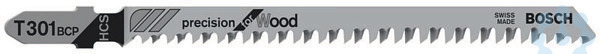 Das T 301 BCP Precision for Wood Stichsägeblatt macht präzise, saubere gerade Schnitte in Holz. Die erhöhte Stärke des Blatts verhindert Verbiegen und ermöglicht präzise, winkelhaltige Schnitte. Die präzisionsgeschliffenen Zähne des Blatts mit Kegelschliffkörper ermöglichen außerdem saubere Schnitte. Das Blatt aus Kohlenstoffstahl ist zum Schneiden von Weichholz und nicht-abrasiven Holzwerkstoffen geeignet. Es ist mit einer feinen Zahnteilung (2,5 mm) und einer großen Länge (117 mm) ausgestattet, um Holzmaterialien mit einer Dicke von 3-65 mm zu schneiden.