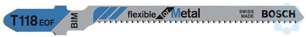 Das T 118 EOF Flexible for Metal Stichsägeblatt ist bruchfest bei Kurvenschnitten in Metall. Die gefrästen, gewellten Zähne sind zum Schneiden von Metallblech konzipiert. Schmales Blatt ermöglicht zudem schnelle Kurven beim Schneiden. Die Zahnleiste aus gehärtetem HSS (Hochgeschwindigkeitsstahl) und BIM (Bimetall) ist mit hochelastischem HCS (Kohlenstoffstahl) verstärkt, wodurch das Bruchrisiko reduziert wird, und sowohl genügend Festigkeit als auch Flexibilität geboten werden, die beide erforderlich sind, um perforiertes Metallblech aus Stahl (Standard-Stärke) zu schneiden. Es ist mit einer feinen Zahnteilung (1,5 mm) ausgestattet, um dünnes Metall mit einer Dicke von 1,5-4 mm zu schneiden.