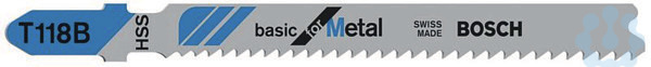 Das T 118 B Basic for Metal Stichsägeblatt macht gerade Schnitte in Metall. Die gefrästen, gewellten Zähne sind ideal für Schnitte ohne besondere Anforderungen. Das Blatt aus hochwertigem gehärtetem Hochgeschwindigkeitsstahl ist zum Schneiden von nicht perforierten Metallblechen mit Standard-Stärke geeignet. Die feine Zahnteilung des Blatts (1,9-2,3 mm) ermöglicht es, eine Vielzahl an mittelstarken Metallblechen mit einer Dicke von 2,5-6 mm zu schneiden.