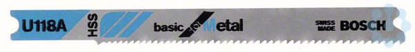 Das U 118 A Basic for Metal Stichsägeblatt macht gerade Schnitte in Metall. Die gefrästen, gewellten Zähne sind ideal für Schnitte ohne besondere Anforderungen. Das Blatt aus hochwertigem gehärtetem HSS (Hochgeschwindigkeitsstahl) ist zum Schneiden von nicht perforierten Metallblechen mit Standard-Stärke geeignet. Die sehr fein progressive Zahnteilung des Blatts (1,1-1,5 mm) ermöglicht es, eine Vielzahl an sehr dünnen massiven Metallblechen mit einer Dicke von 1-3 mm zu schneiden.