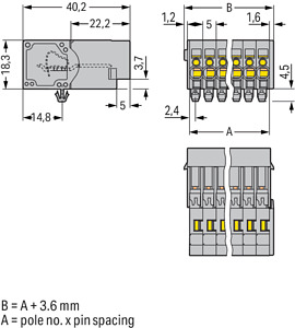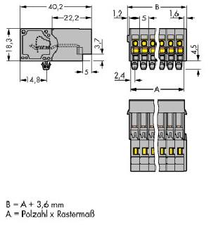1-Leiter-Stiftleiste; CAGE CLAMP®; 4 mm²; Rastermaß 5 mm; 10-polig; TS 35/Oberflächenmontage; Rastfüße; 4,00 mm²; grau