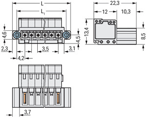 Stiftleiste 6-polig mit Gewindefl. 3,5mm li-gr Fehlst.