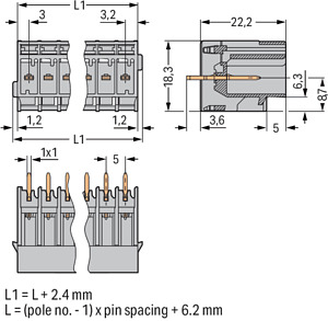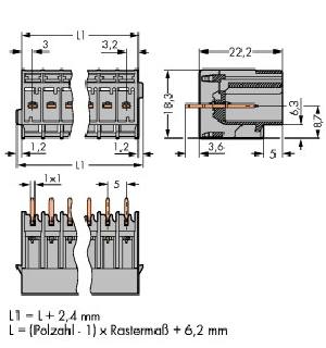 Stiftleiste 8pol. grau Einlötstift gerade 1x1mm