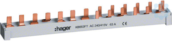 Stiftschiene 4-polig 10²mm 13PLE. Stiftschiene 4-polig 10²mm 13PLE für 1xFI-4P+3xLS-1P+6xLS-1+N/1PLE, Länge 13 Platzeinheiten.
