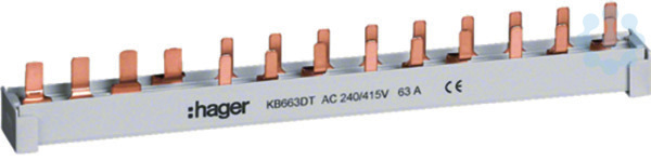 Stiftschiene 4-polig 10²mm 13PLE. Stiftschiene 4-polig 10²mm 13PLE für 1xFI-4P+9xLS-1+N/1PLE, Länge 13 Platzeinheiten.