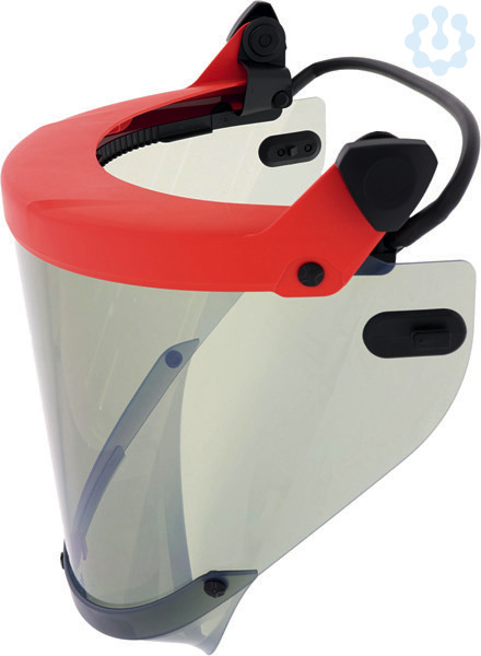 Störlichtbogengeprüfter Schutzschirm DEHNcare APS T AS mit Spannband und transparentem Kinnschutz für Wartungs- und Instandhaltungsarbeiten an elektrischen Anlagen. Passend für alle gängigen Elektriker-Schutzhelme. Zertifiziert nach den Anforderungen der PSA-Verordnung (EU) 2016/425 zum Inverkehrbringen der persönlichen Schutzausrüstung. Hoher Tragekomfort. Hohe Schutzwirkung durch neuartigen Aktivschutz. Beste Sicht durch Antibeschlag-Beschichtung und hoher Lichtdurchlässigkeit (Lichttransmissionsklasse: 2). Störlichtbogengeprüft nach BG-Prüfgrundsatz GS-ET-29: Klasse 2 mit 423 kJ / m2 und ASTM F2178: 14 cal / cm2.