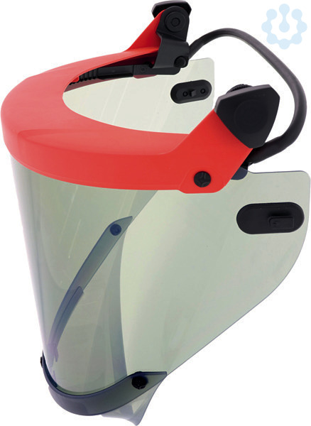 StörStörlichtbogengeprüfter Schutzschirm DEHNcare APS T AS mit Spannband und transparentem Kinnschutz für Wartungs- und Instandhaltungsarbeiten an elektrischen Anlagen. Passend für alle gängigen Elektriker-Schutzhelme. Zertifiziert nach den Anforderungen der PSA-Verordnung (EU) 2016/425 zum Inverkehrbringen der persönlichen Schutzausrüstung. Hoher Tragekomfort. Hohe Schutzwirkung durch neuartigen Aktivschutz. Beste Sicht durch Antibeschlag-Beschichtung und hoher Lichtdurchlässigkeit (Lichttransmissionsklasse: 2). Störlichtbogengeprüft nach BG-Prüfgrundsatz GS-ET-29: Klasse 2 mit 423 kJ / m2 und ASTM F2178: 25 cal / cm2.