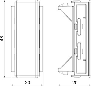 Stoßstellenabdeckung für das Oberteil der Rapid 45-2 Geräteeinbaukanäle zum Kaschieren von Schnittkanten und einen sauberen Anschluss an eingebaute Modul 45®-Geräte.