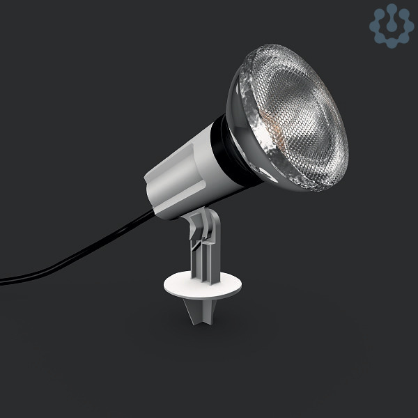 Mobiler Gartenstrahler mit Erdspieß. Gehäuse Kunststoff. 80° vertikal schwenkbar. Erdspieß aus faserverstärktem Kunststoff. Mit Anschlussleitung 6 m inklusive Schukostecker.