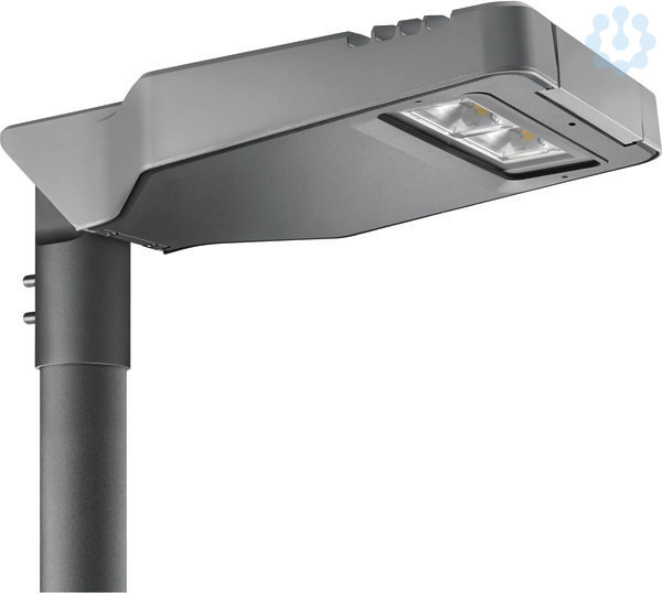 Strassenleuchte in LED- Technik Road 5, Gehaeuse aus Aluminium-Druckguss mit Klimamembran. Farbe Leuchtenkoerper Aluminium / Glasrahmen Graphitgrau, Reflektoren aus bedampften Polycarbonat, mit Flachglasabdeckung aus gehaertetem Sicherheitsglas, Leuchten werkzeuglos zu oeffnen, Die Elektrokomponentenplatte ist werkzeuglos austauschbar. Die Leuchte ist fuer Mastaufsatz mit einem Neigungswinkel von -10° bis +20° und bei Mastansatz mit einem Neigungswinkel von -20° bis +10° einsetzbar.