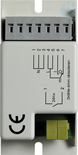 Stromstoßrelais 1-polig Merkmale: Die Geräte verfügen über eine eigene galvanisch getrennte Stromversorgung. Mit einem Kontakt zum Schalten. Hinweise : Montage in Unterputz-Doppelgerätedose oder medizinischer Versorgungseinheit.