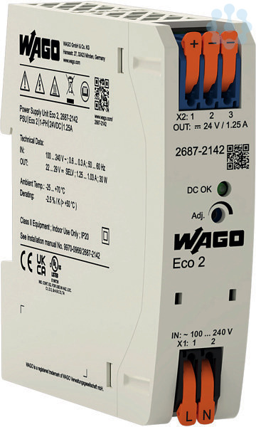 Stromversorgung; Eco 2; 1-phasig; Ausgangsspannung DC 24 V; Ausgangsstrom 1,25 A; DC-OK LED