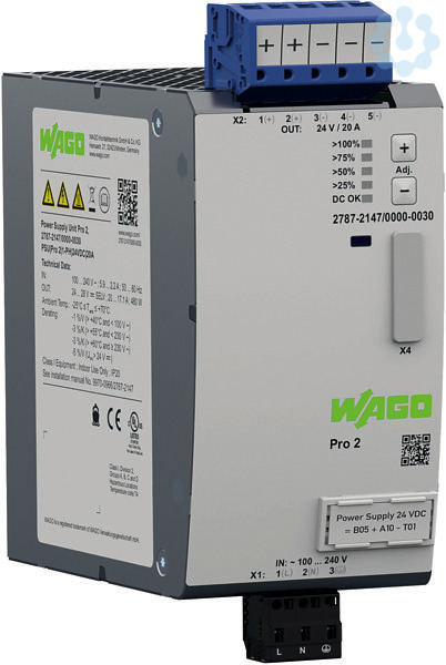 Stromversorgung; Pro 2; 1-phasig; Ausgangsspannung DC 24 V; Ausgangsstrom 20 A; TopBoost + PowerBoost; kommunikationsfähig