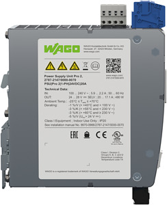 Stromversorgung; Pro 2; 1-phasig; Ausgangsspannung DC 24 V; Ausgangsstrom 20 A; TopBoost + PowerBoost; Schutzlackierung; kommunikationsfähig