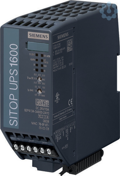 SITOP UPS1600 10 A Ethernet/ PROFINET Unterbrechungsfreie Stromversorgung mit Ethernet/ PROFINET Schnittstelle / OPC UA Server / Webserver Eingang: DC 24 V Ausgang: DC 24 V/10 A *EX-Zulassung nicht mehr verfügbar* SITOP UPS1600 mit Batteriemodulen UPS1100 ist die optimale Ergänzung für alle 24-V-Stromversorgungen. Sie überbrückt längere Netzausfälle bis in den Stundenbereich und sorgt für einen unterbrechungsfreien Anlagenbetrieb. Das intelligente Batteriemanagement erkennt automatisch die UPS1100-Energiespeicher und sorgt für optimales temperaturgeführtes Laden und fortlaufende Überwachung. Die kompakten UPS1600-Module bieten neue Möglichkeiten bei der Diagnose und der Systemintegration. Über zwei Ethernet/PROFINET-Ports können sie einfach in die PC- oder in die SPS-Welt eingebunden werden. Die vollständige Integration in TIA bietet komfortables Engineering im TIA Portal und wird unterstützt durch vorgefertigte Funktionsbausteine für S7 und WinCC Faceplates für die schnelle Visualisierung. Mit dem integrierten Web-Server und dem SITOP UPS Manager ist auch eine einfache Überwachung und Konfiguration in PC-Systemen möglich, z. B. das Herunterfahren mehrerer PCs nach dem Master-Slave-Prinzip.