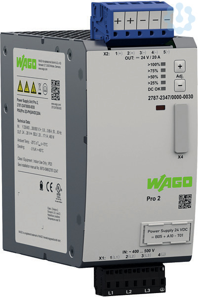 Stromversorgung; Pro 2; 3-phasig; Ausgangsspannung DC 24 V; Ausgangsstrom 20 A; TopBoost + PowerBoost; kommunikationsfähig