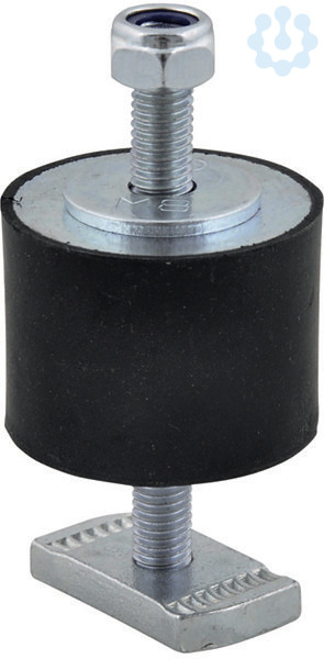 Schnell montiert durch vormontierte Schiebemutter, schwingungsdämpfend und schalldämmend gemäß DIN 4109 befestigt das Schalldämmelement Strut Typ A M8x23mm aus vulkanisiertem Gummi und Stahl (EV) stehende Geräte etwa auf Montageschienen oder Wandkonsolen.