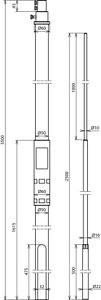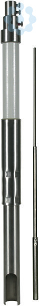 Stützrohr GFK/Al mit seitlichen Auslass für Stative, mit innenliegendem Endverschluss und PA-Federelement für die HVI power Leitung, zum getrennten (isolierten) Aufbau von Fangeinrichtungen mit Fangstange. Zum Einhalten des Trennungsabstandes zu elektrisch leitenden Teilen nach DIN EN 62305-3 (VDE 0185-305-3). Rohr D50 mm aus glasfaserverstärktem Kunststoff (GFK), UV-stabilisiert, Farbe lichtgrau, Materialfaktor km= 0,7. Ausführung einteilig, kombiniert mit Fangstange (D22 / 16 / 10 mm, Länge 2500 mm) aus Al.