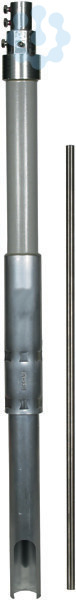Stützrohr GFK/Al mit seitlichen Auslass für Stative, innenliegendem Endverschluss und PA-Federelement für die HVI long Leitung, zum getrennten (isolierten) Aufbau von Fangeinrichtungen mit Fangspitze. Zum Einhalten des Trennungsabstandes zu elektrisch leitenden Teilen nach DIN EN 62305-3 (VDE 0185-305-3). Rohr D50 mm aus glasfaserverstärktem Kunststoff (GFK), UV-stabilisiert, Farbe lichtgrau, Materialfaktor km= 0,7. Ausführung einteilig, kombiniert mit Fangspitze (D10 mm, Länge 1000 mm) aus NIRO.
