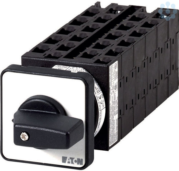 Stufenschalter, Sortiment: Steuerschalter, Normen und Bestimmungen: IEC/EN 60947, VDE 0660, IEC/EN 60204, CSA, UL, Lasttrennschalter nach IEC/EN 60947-3, Typkenner: T0, mit schwarzem Knebel und Frontschild, Kontakte: 21, Schutzart: Front IP65, Bauform: Einbau, Schaltwinkel: 60 °, Schaltverhalten: rastend, ohne 0-Stellung, 11 Baueinheit(en), Bemessungsdauerstrom: Iu= 20 A, Frontschild: 1-3