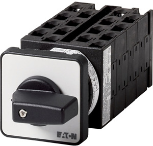 Stufenschalter, Sortiment: Steuerschalter, Normen und Bestimmungen: IEC/EN 60947, VDE 0660, IEC/EN 60204, CSA, UL, Lasttrennschalter nach IEC/EN 60947-3, Typkenner: T0, mit schwarzem Knebel und Frontschild, Kontakte: 16, Schutzart: Front IP65, Bauform: Einbau, Schaltwinkel: 45 °, Schaltverhalten: rastend, mit 0-Stellung, 8 Baueinheit(en), Bemessungsdauerstrom: Iu= 20 A, Frontschild: 0-4