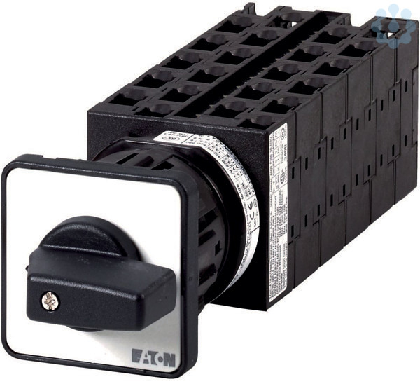 Stufenschalter, Sortiment: Steuerschalter, Normen und Bestimmungen: IEC/EN 60947, VDE 0660, IEC/EN 60204, CSA, UL, Lasttrennschalter nach IEC/EN 60947-3, Typkenner: T0, mit schwarzem Knebel und Frontschild, Kontakte: 21, Schutzart: Front IP65, Bauform: Zentraleinbau, Schaltwinkel: 45 °, Schaltverhalten: rastend, ohne 0-Stellung, 11 Baueinheit(en), Bemessungsdauerstrom: Iu= 20 A, Frontschild: 1-7