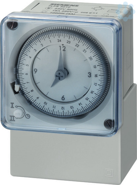 Synchron-Schaltuhr Tag 1 Wechsler 230V/50Hz Aufputz Mechanische Zeitschaltuhr SENTRON 7LF5 für das zeitlich gesteuerte Schalten elektrischer Verbraucher, z.B. Beleuchtungen oder industrielle Steueranlagen.Die mechanischen Zeitschaltuhren von Siemens sind besonders robust.Die Zeitschaltgeräte 7LF5 sind als Synchron- oder Quarz-Schaltuhren für Hutschiene oder Wandaufbau mit verschiedenen Zeitbereichen und mit unterschiedlichen Hilfskontakten verfügbar.Zeitschaltgeräte 7LF - Sicherheit, Komfort und Energieeinsparung.