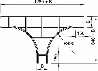 T-Stück horizontal für alle Kabelleitern mit der Seitenhöhe 60 mm. VS-Sprosse, passende Bügelschelle ist der Typ 2056.
