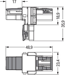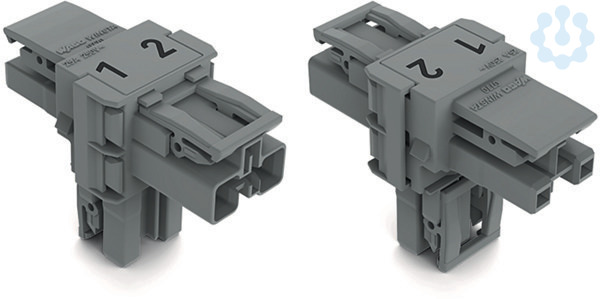 T-Verteiler; 2-polig; Kod. B; 1 Eingang; 2 Ausgänge; 3 Verriegelungsklinken; für fliegende Verbindungen; grau