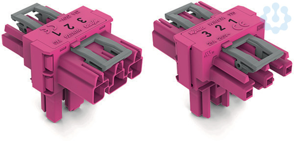 T-Verteiler; 3-polig; Kod. B; 1 Eingang; 2 Ausgänge; 2 Verriegelungsklinken; pink
