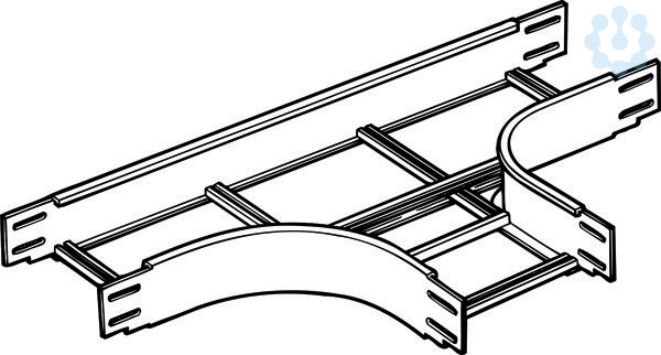 T-Stück, Breite: 600 mm, Radius 445 mm, Sprossenöffnungen nach oben, Montageflanschen einschieben im Leiterbaumprofil