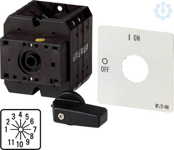 Stufenschalter, Sortiment: Steuerschalter, Normen und Bestimmungen: IEC/EN 60947, VDE 0660, IEC/EN 60204, Lasttrennschalter nach IEC/EN 60947-3, Typkenner: T5, Kontakte: 11, Bauform: Zwischenbau, Basisschalter, Schaltwinkel: 30 °, 6 Baueinheit(en), Bemessungsdauerstrom: Iu= 100 A