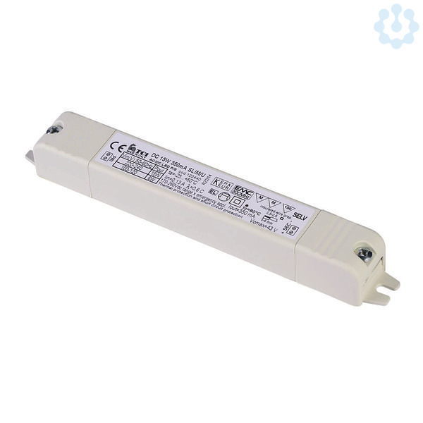 TCI LED-Treiber mit 350mA Konstantstrom und einer Leistung von 15W in besonders flacher Bauform inklusive Zugentlastung. Der Anschluss der LEDs muss in Reihenschaltung erfolgen.