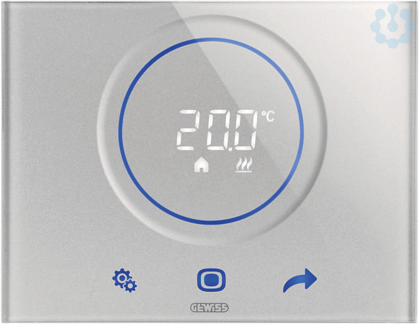 Aufputz-Thermostat fuer die Steuerung von Geraeten zur Heizung/Kuehlung. Mit Touch Oberflaeche. Inbetriebnahme mit GEWISS APP Thermo ICE 2.0.